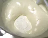 用手持搅拌器搅拌5~7分钟,直到打发。像打发鲜奶油一样,呈现白色、浓稠状。