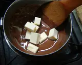 在另一个碗中,将蛋黄和剩余的砂糖混合,用手动打蛋器搅拌至白色、类似蛋黄酱的状态,然后加入步骤3中的巧克力混合物和鲜奶油。