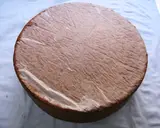在台面上铺一块拧干的湿布,从模具中取出海绵蛋糕。剥去侧面的烘焙纸(将上面朝下放置)。
