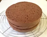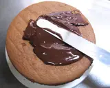 将(23)步骤中切好的海绵蛋糕的切口部分用(26)的巧克力奶油厚厚地夹住!(※比想象中多夹一些!这样蛋糕会更加湿润♡)