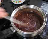 将锅底放入冰水中,用打蛋器搅拌至巧克力奶油达到浓稠易于涂抹的状态。(打发后也非常美味哦♡)