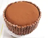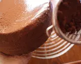 巧克力奶油凝固后(如果不容易凝固,请放入冰箱♪),用茶筛撒上可可粉(用量不定)。在撒侧面时,将蛋糕稍微倾斜再撒。
