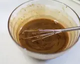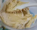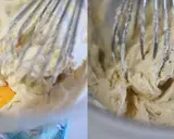 将打散的鸡蛋分4次少量加入步骤5的混合物中。每次加入时要用力搅拌,以防止分离。