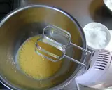 ※在此过程中,打发的蛋液体积可能会减少到第五步时的一半左右,但这是正常的。这个步骤的目的是将打发过程中形成的大气泡转变为难以破裂的小气泡。如果这个步骤不够仔细,烘烤后的蛋糕可能会塌陷,口感也会变差。