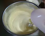 用高速打发,当蛋液温度接近体温时,从热水浴中取出,继续打发。