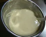 即使面粉已经均匀混合到面糊中,仍需继续搅拌。如果提起的面糊落下时留下的痕迹像照片中那样仍然清晰,那就还需要再搅拌。
