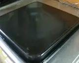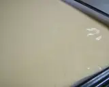 将面糊倒入铺有烤纸的烤盘中。将碗边缘残留的面糊刮入烤盘的角落。轻轻拍打烤盘底部以去除气泡,然后将表面抹平。