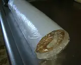 然后继续用擀面杖轻轻而均匀地将整个蛋糕卷起来。