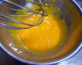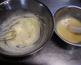 在另一个碗中,将蛋黄和一半的砂糖打发至颜色变浅。