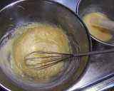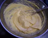 将步骤6的巧克力和黄油混合物分两次加入步骤8的蛋黄中,搅拌均匀。