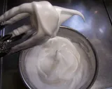在蛋白中加入一小撮剩余的砂糖,开始打发。