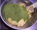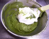 加入已过筛的小麦粉和抹茶,轻轻搅拌均匀。