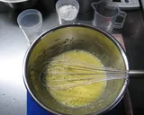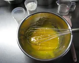 混合蛋黄和糖:将蛋黄打散后,加入约10克的砂糖,用打蛋器充分搅拌。(★不需要打发)