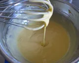 加入面粉:将面粉再次过筛后一次性加入,用打蛋器从中间开始搅拌,直到所有材料混合均匀。(面糊的稠度应该像煎饼面糊一样)