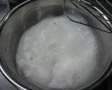 继续打发:当蛋白变得细腻,体积大约翻倍时,加入剩余砂糖的一半,继续高速打发。