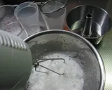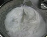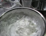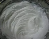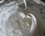 完成蛋白霜:当蛋白开始像云一样膨胀并变得有光泽时,降低打发速度,直到蛋白霜有光泽为止。