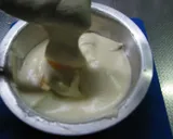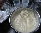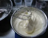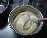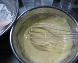 混合蛋黄糊和蛋白霜:将少量的蛋白霜加入到步骤4的蛋黄糊中,并用打蛋器充分混合。