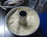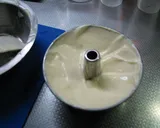 倒入模具:将面糊倒入未涂油的模具中,用刮刀将面糊抹在模具周围,以消除气泡。照片显示的是中途的状态。
