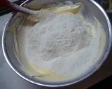 加入蛋黄搅拌均匀,然后加入低筋面粉,用橡皮刮刀轻轻拌匀,直到看不见粉末为止。
