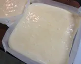 用烘焙纸四边立起并固定四个角,制作两个比18厘米蛋糕圈稍大的模具(约20厘米见方)。