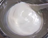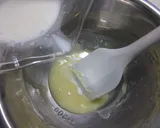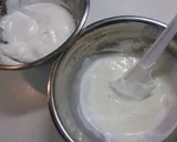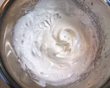 在另一个碗中,加入蛋白和糖,打发至硬挺,制成蛋白霜。