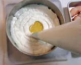 在另一个碗中,加入鲜奶油和糖,打发至浓稠。将1/3的奶油加入冷却的步骤9中,轻轻混合,然后加入剩余的奶油,搅拌均匀。