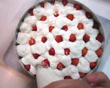 慕斯的量刚好够用,如果草莓不够,可能会导致慕斯也不够,所以请多准备一些草莓。如果在步骤9中明胶没有完全溶解,请用水浴加热至完全溶解。