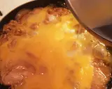 加入剩余的打散鸡蛋,继续用中火煮至半熟♪
