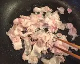 在平底锅中用中火加热沙拉油,加入猪肉,翻炒至变色♪