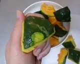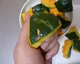 当煮汁剩下大约1/3时,将南瓜皮朝下放置。