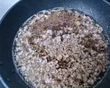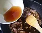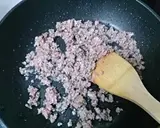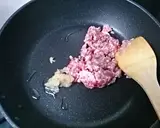 在热的平底锅中加入1大勺油,炒猪肉末和生姜,