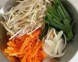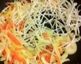 洋葱和胡萝卜切成细丝,韭菜切成大约5厘米的长度♪