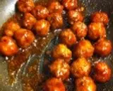 加热平底锅,放入炸好的肉丸♪