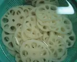 将莲藕切成约3~4毫米厚的薄片,放入水中浸泡。