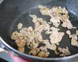 在平底锅中放适量油,炒猪肉。