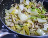 白菜茎部分适度加热后,加入叶子部分轻轻翻炒。