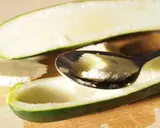 西葫芦纵向切开,用勺子挖出内部,内部部分切碎