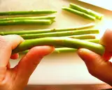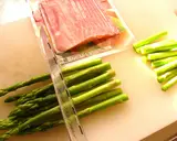 切芦笋的长度要稍微比培根长一点。