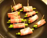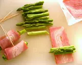 将2~3根芦笋用培根卷起来,用牙签固定住。