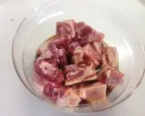 将猪肉(或鸡肉)切成一口大小,混合*的调味料,腌制约10分钟。