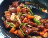 在冷锅中加入甜酸酱和所有的蔬菜,开火加热,中火搅拌直到出现浓稠感。
