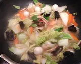 所有食材都熟透后,关火,加入水淀粉拌匀,最后用大火加热至汤汁浓稠,即可完成◎