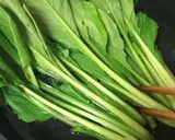 小松菜用足量的沸水焯一下。用平底锅煮更方便,因为锅子宽。